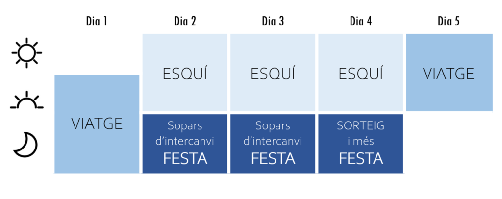 Sortida: divendres 5/12 a les 19h des del pàrquing de la Vila (demanem màxima puntualitat!).
